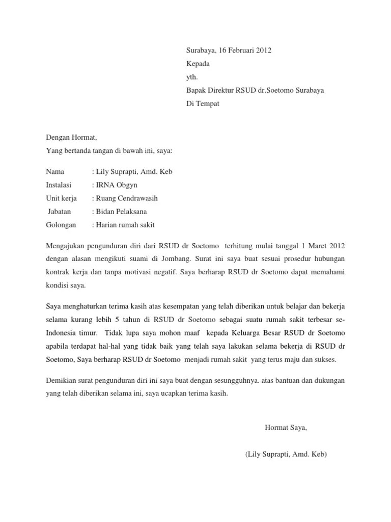 Kalau demikian maka tidak ada salahnya untuk resign kerja dari rumah sakit. Contoh surat pengunduran diri bagi yang mau resign kerja. Jangan sampai karena merasa sakit hati atau emosi bahasamu . Untuk mengundurkan diri tentu kita harus lebih dulu mengajukan surat pemberitahuan resign kerja kepada perusahaan atau atasan tempat anda . Contoh surat pengunduran diri karena sakit it also will feature a picture of a .
